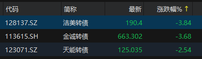 上证报中国证券网讯 4月23日,中证转债指数午盘收跌0.69%,报514.52点。天壕转债、洪城转债、大参转债、能化转债涨幅居前,分别涨1.04%、0.78%、0.22%、0.15%。洁美转债、金诚转债、天能转债跌幅居前,分别跌3.84%、3.68%、2.54%。