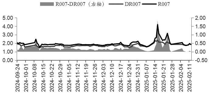 央行近期态度偏谨慎,资金面紧平衡状态延续,后期经济数据的修复情况备受关注。在经历了2024年年末“宽货币”的前置交易后,10年期国债收益率已接近1.6%的历史低位。2025年“宽货币”基调下,尽管利率中枢仍有下行空间,但受央行稳汇率政策影响,短期降息概率较低,资金面或将继续维持紧平衡状态。全国两会前夕,市场多空博弈加剧,债市震荡预期增强。