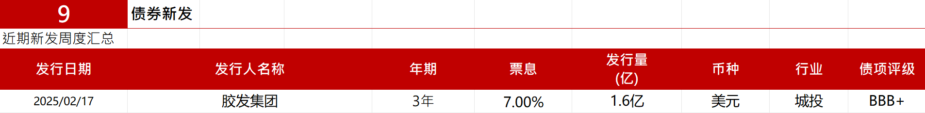 一级市场活跃度提升,胶发集团成功参与美元债新发,彰显市场信心。