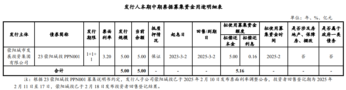 根据募集说明书,本期中票发行的5.16亿元将全额用于偿还发行人子公司荥阳城投的存量债务融资工具本息。这一举措不仅有助于优化公司的债务结构,还能进一步降低融资成本。