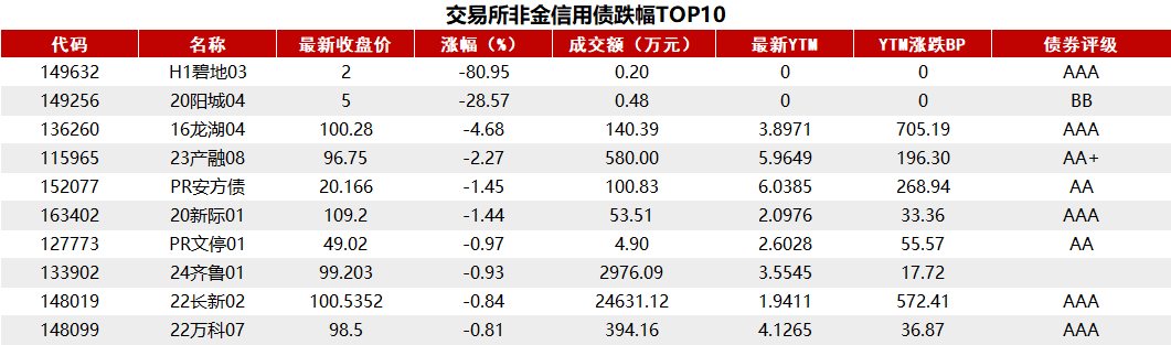 一级市场和信用债方面也有相关动态,今日交易所市场非金信用债跌幅和涨幅排行前五的债券已列出。
