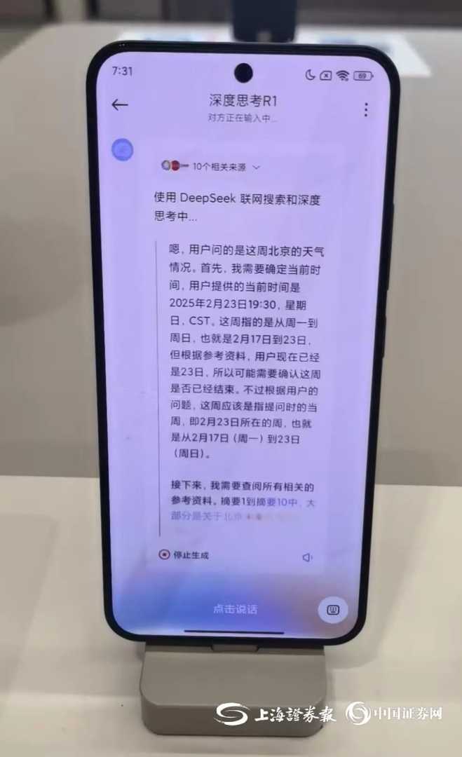 上海证券报记者于2月23日在小米线下门店亲身体验了这一过程。在系统更新后,用户会收到“超级小爱”的推送,下载安装后,通过说出“打开深度思考”的指令,即可启用DeepSeek-R1模型,享受其带来的智能服务。