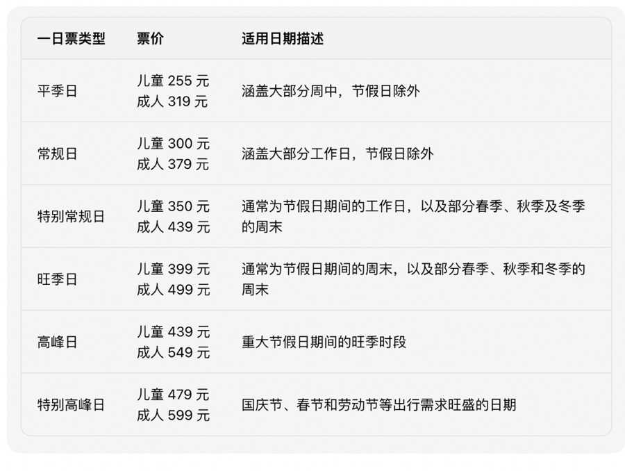 票价方面,上海乐高乐园根据入园日期分为六档:平季日、常规日、特别常规日、旺季日、高峰日、特别高峰日,成人票价区间为319元至599元,儿童票价则为255元至479元。(详见下表)