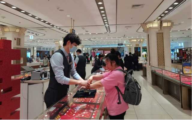 在北京菜市口百货大楼,金饰销售员表示,金价上涨对销售影响不大,消费者购买热情依旧高涨。同时,投资金条柜台前也聚集了不少询问的消费者,他们看重黄金的保值功能。