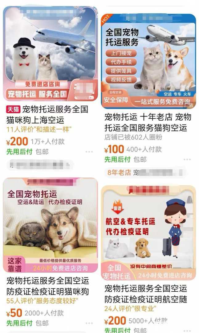 电商平台上,大量商家推出宠物托运代办服务。