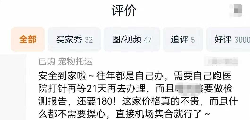 一商家表示,买家只需提供宠物照片及信息、乘机人信息,下单后会有专人协助办理托运。评论区里,不少网友称“无阻碍顺利托运”。
