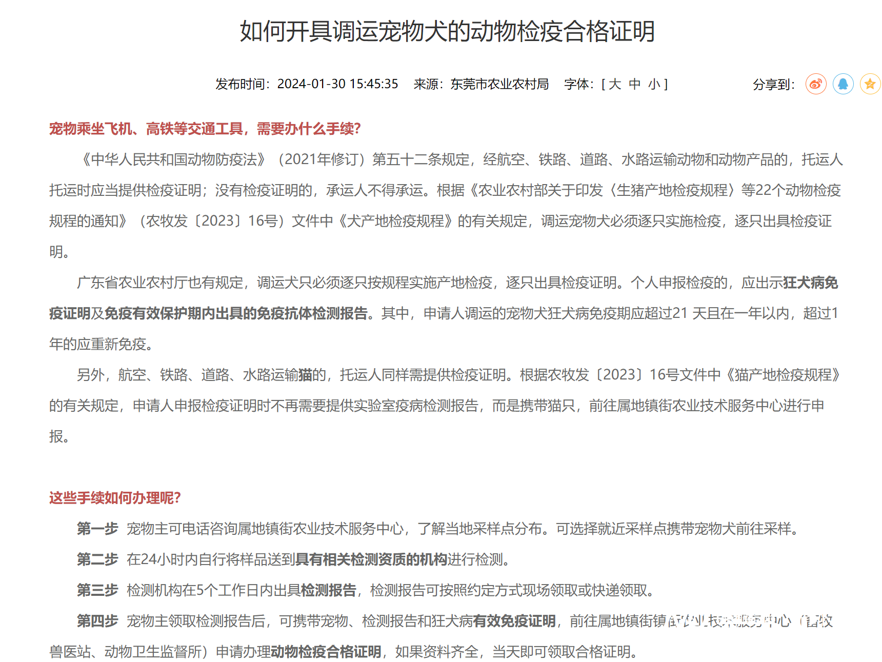 东莞市农业农村局发布的检疫合格证明办理流程。