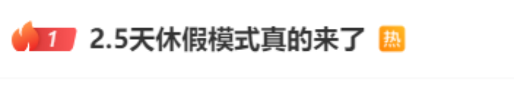 5月23日晚,“2.5天休假模式真的来了”冲上热搜。四川绵阳宣布试行4.5天弹性工作制,引发网友热议,不少网友呼吁全国推广。