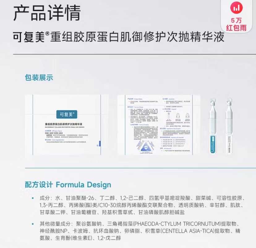 (涉事产品的配方信息,来源:可复美淘宝官方旗舰店详情页)