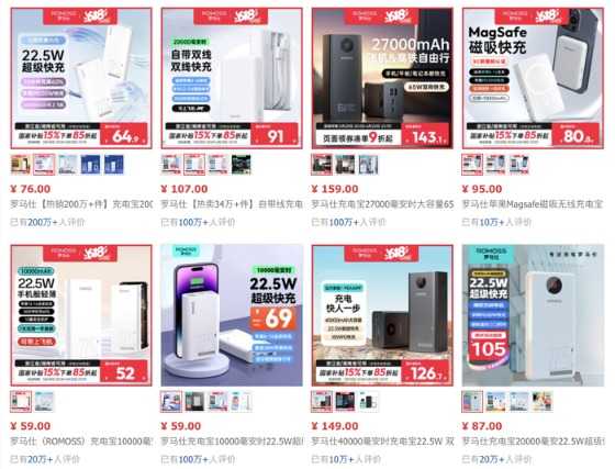 罗马仕自营旗舰店的部分在售充电宝