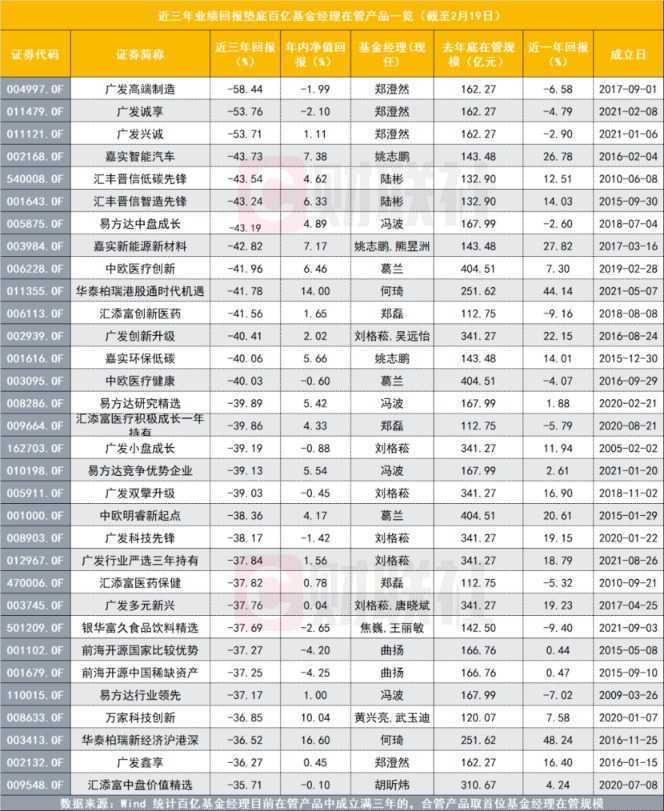 前海开源沪港深非周期、广发价值核心近一年业绩超过40%,近三年业绩亏损幅度已缩窄至3%以内。