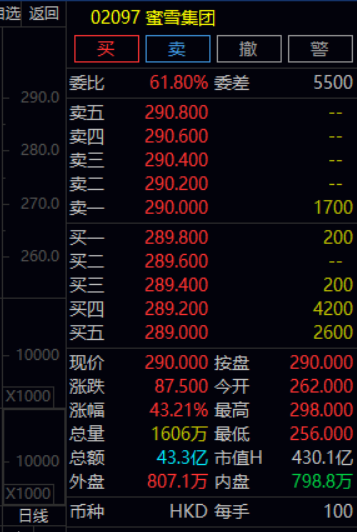 蜜雪集团港股上市交易,市场反响热烈,截至收盘涨幅超40%。开盘后,恒生消费板块活跃,恒生消费指数盘中涨幅超过2%,多只相关主题ETF涨幅一度超过3%。