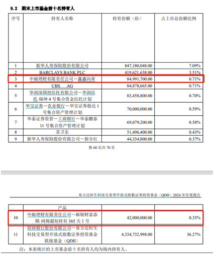 易方达恒生科技ETF的年报数据显示,中邮理财旗下产品成为该ETF的第四大持有人。今年一季度,恒生科技指数大涨超20%,为银行理财产品带来了显著的投资回报。此外,招银理财旗下多只产品也位列广发中证国新港股通央企红利ETF的前十大持有人,凸显了理财公司在ETF市场的活跃身影。