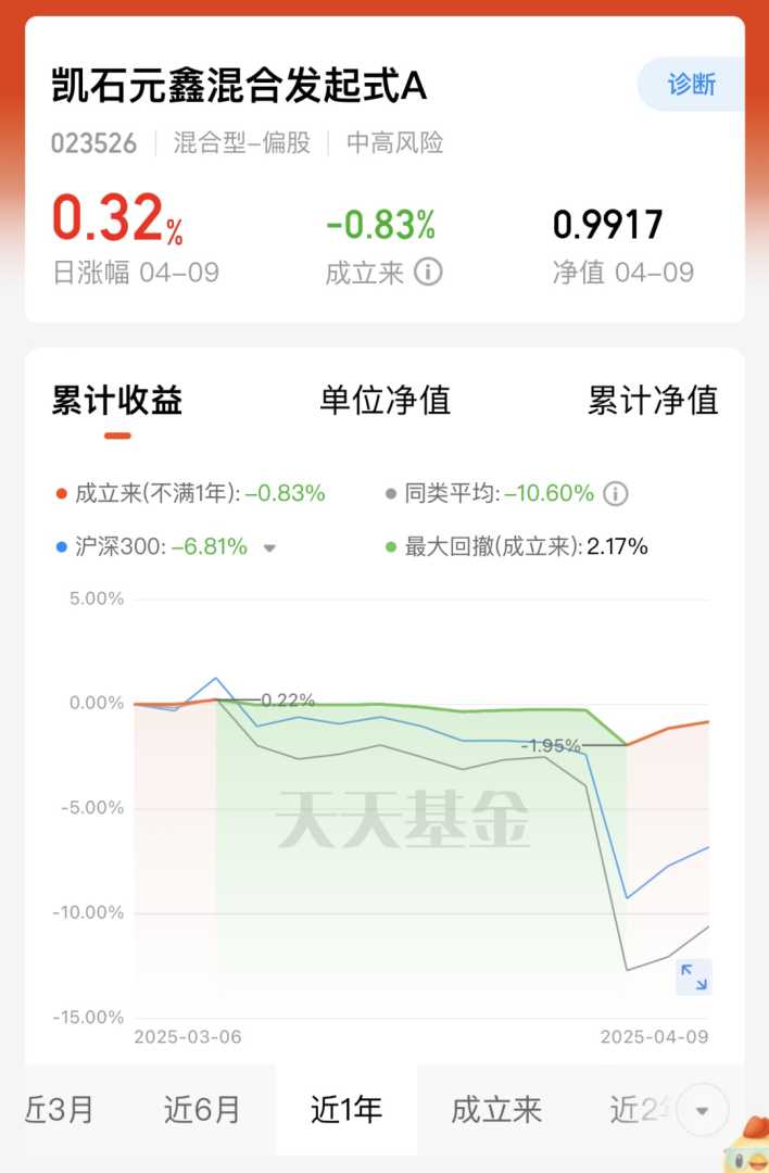 同样成立于3月6日的凯石元鑫混合也走出了相似的净值曲线图。该基金在4月7日下跌1.68%,但随后两天净值出现上涨。值得一提的是,该基金同样是公司高管及基金经理真金白银参与自购的产品。