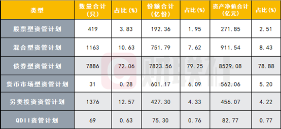截至4月25日,债券型资管计划合计8529.08亿元,占比78.88%,是券商资管的支柱性产品。中信证券年报显示,去年全年公司投资收益高达324.86亿元,同比高增71.76%,其中债券持仓规模预计不低。信用债是券商资管债券配置的主力,债券型产品偏好配置金融信用债和同业存单。