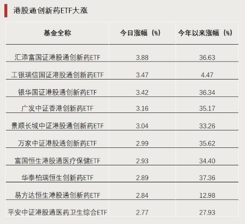 港股通创新药ETF领涨,市场看好创新药板块