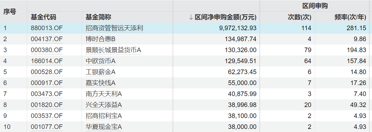 看到具体产品方面,招商资管智远天添利(880013)年初至今自购近千亿,是本轮招商资管自购的主要方向。此外,博时合惠B(004137)、景顺长城景益货币A(000380)、中欧货币A(166014)等货币基金均迎来基金公司积极自购。