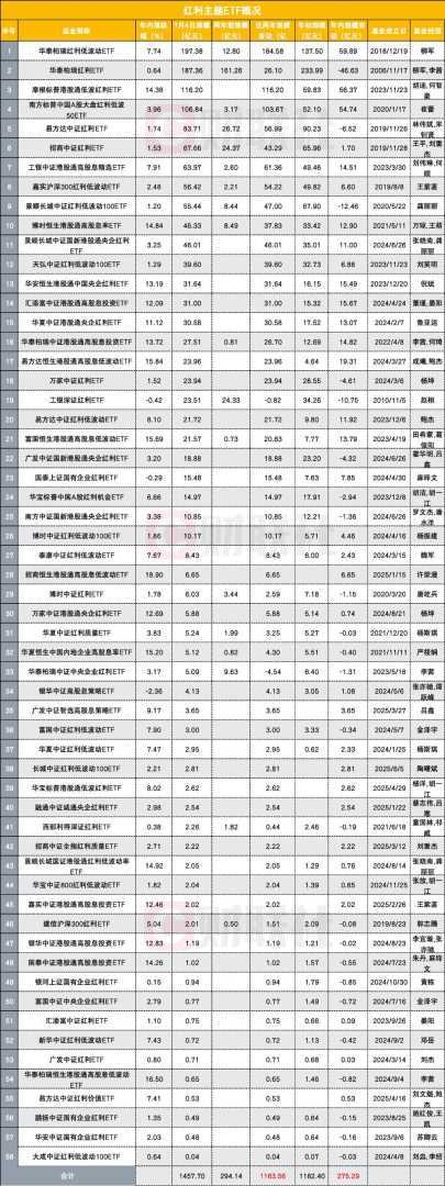 上述红利主题ETF最新产品总规模已来到1457.70亿元,较两年前的294.14亿元增加了1163.56亿元,几乎呈5倍增长之姿。从年内的表现看,该类产品规模较本年初也增长了275.29亿元。