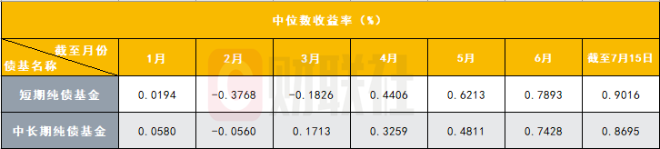 财联社7月16日讯(编辑李响)向久期要收益不再吃香?财联社据Wind数据统计,截至7月15日,今年以来,有业绩显示的3505只中长期纯债基金(不区分A/C)收益率最高涨幅为4.77%,最大跌幅为7.56%,中位数仅0.87%。作为对比,912只短期纯债基金(不区分A/C)中位数达到0.90%,已连续5个月高于中长期纯债基金收益表现。