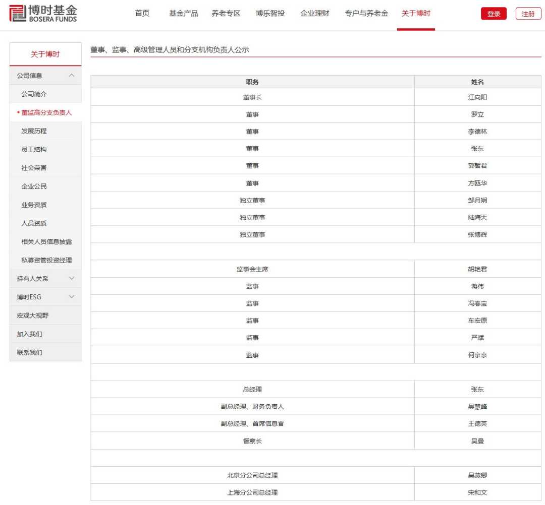 公开信息显示,江向阳于2015年从证监会来到博时基金,当年7月出任公司总经理,2020年4月出任博时基金董事长。张东目前是博时基金总经理,此前的工作经历也与招商局集团深度绑定,在银行财富管理领域经验丰富,在招商银行总行财富管理部、总行信用卡中心、总行零售金融总部等多个部门任职。
