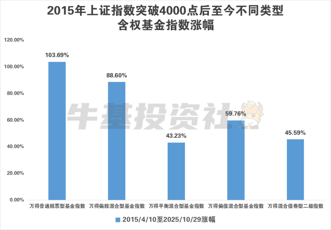 通过看上证指数等主要股指的表现,可以了解股市的整体走势,但是对于基金而言,由于基金可以通过挖掘不同类资产、不同行业甚至个股的结构性机会,可以走出超越股指的行情。自2015年4月10日突破4000点,到今年10月29日时隔十年再次突破4000点,上证指数原地踏步,但是许多基金早已净值创新高且涨幅喜人,这正是基金的魅力所在。
