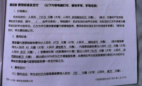 据时代周报记者调查,多位业主反映,他们被一些美化代售公司承诺的快速卖房所吸引,支付了高额的装修费和营销代理服务费,但结果房子却并未如期售出。业主白雅便是其中之一。2024年上半年,她委托塑房(上海)商务咨询有限公司(下称“塑房公司”)对其名下的一套房子进行美化代售,装修费近50万,但至今房子仍未卖出。
