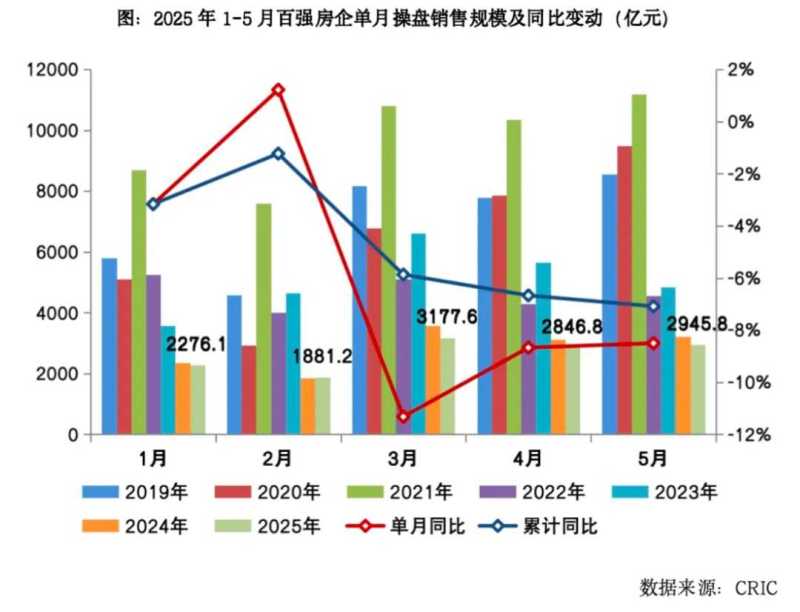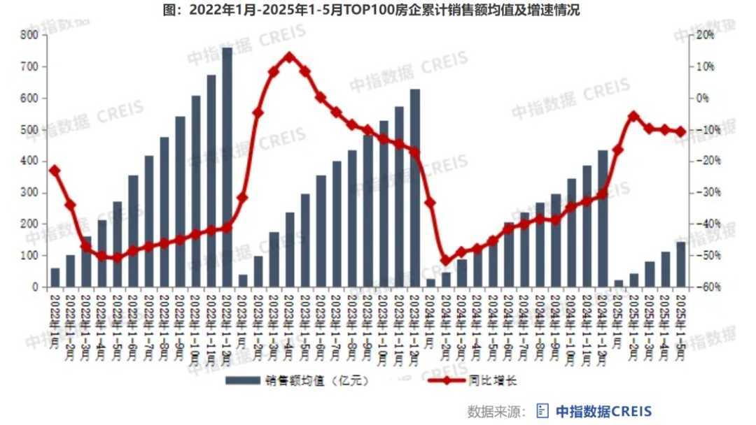 5月30日—31日,中指研究院、克而瑞、亿翰智库等机构陆续发布2025年前5月百强房企销售业绩及拿地金额榜单。中指研究院数据显示,前5月,百强房企销售总额14436.4亿元,同比下降10.8%。另据克而瑞数据,百强房企5月销售操盘金额2945.8亿元,环比增长3.5%。房地产市场止跌回稳,但仍需关注后续发展。