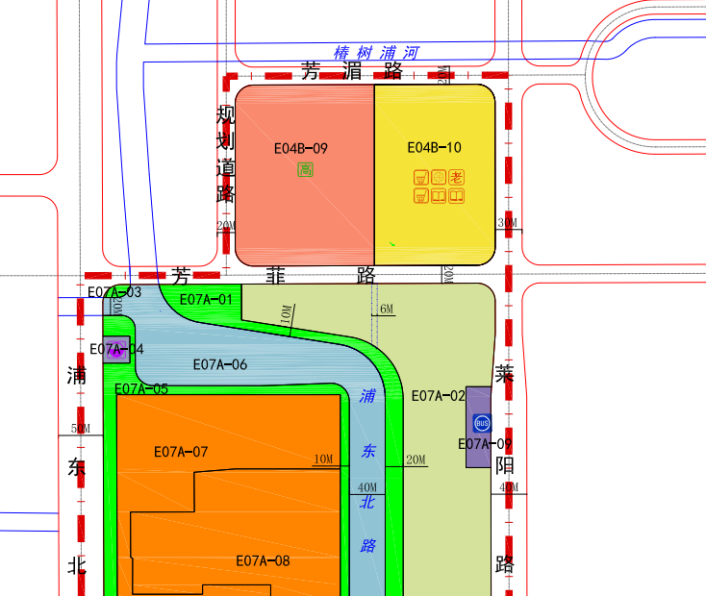 出让文件显示,该地块位于森兰板块,东至莱阳路、南至芳菲路、西至E04B-09地块、北至芳湄路,出让面积26931.62平方米,容积率2.5。