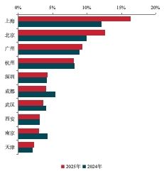 2024、2025年30家经营活跃房企销售贡献占比较高的城市
