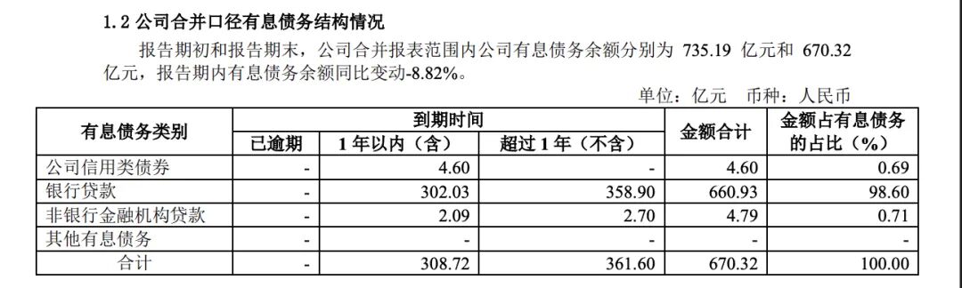 在日前披露的财报中,金地集团透露了过去一年在偿债方面做出的努力。截至2025年末,公司合并口径范围有息负债余额约670.32亿元,同比减少8.82%。其中,一年内到期的债务规模为308.72亿元,分别为4.6亿元的信用类债券、302.03亿元的银行贷款、2.09亿元的非银行金融机构贷款。